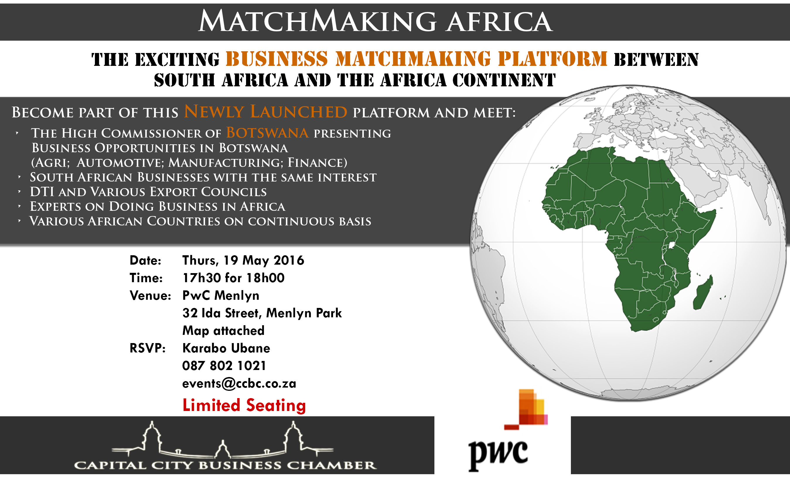 The Capital City Business Chamber (CCBC) is an innovative organization working for the success of the Business Community in the Capital City (Pretoria/Tshwane) of South Africa